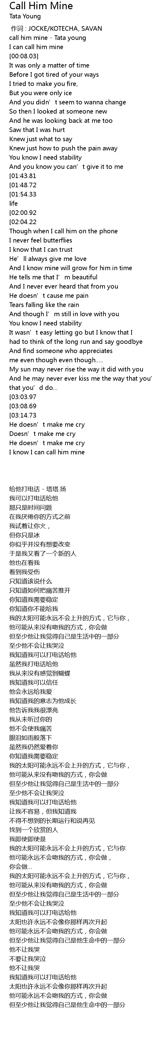 | [03:00.83][02:04.22][01:07.72] | I know I can call him mine |