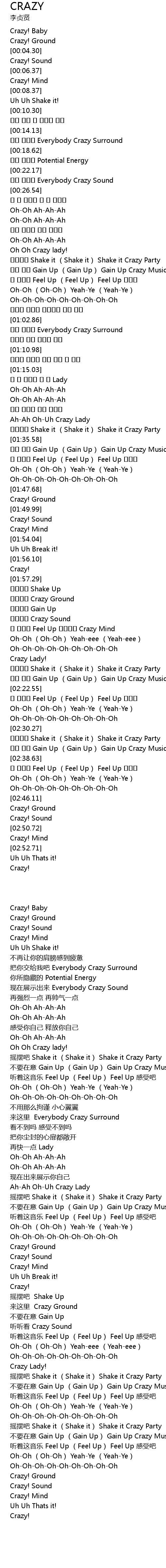 | [02:31.22] | Shake it Shake it Shake it Crazy Party |
