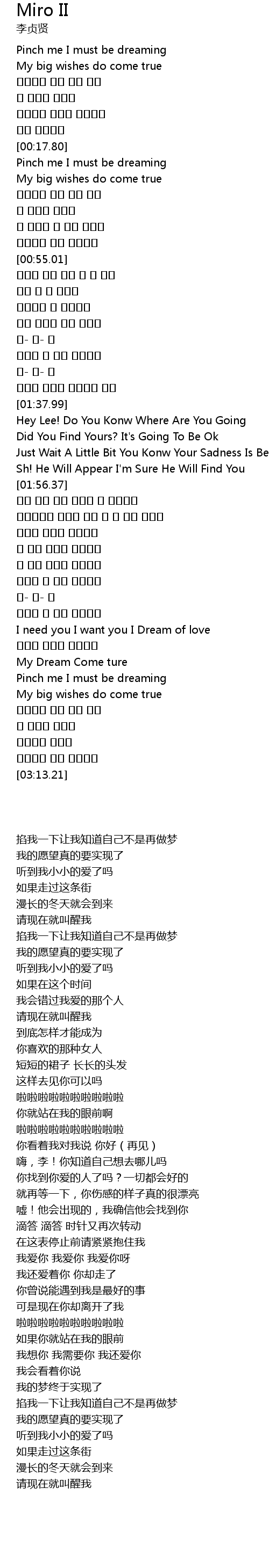 | [02:53.10] | My Dream Come ture |