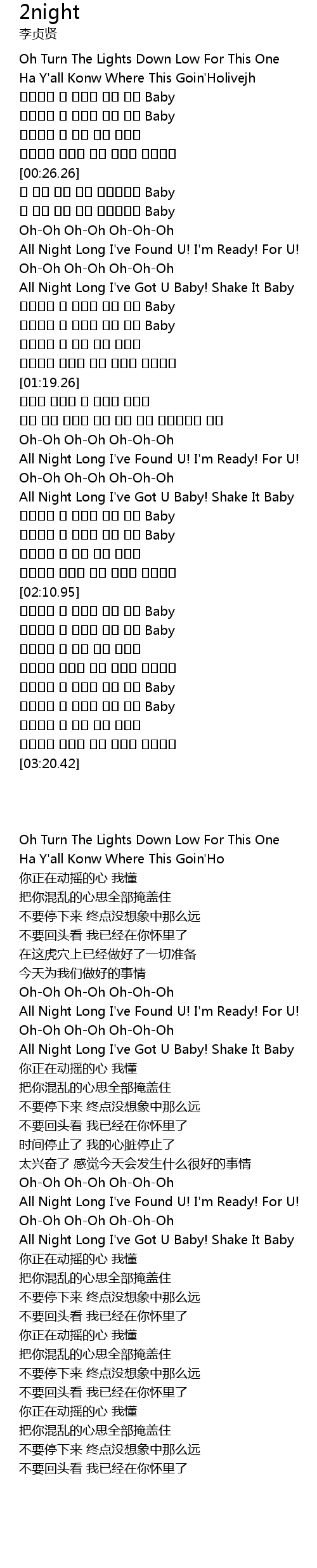 | [01:48.51] | All Night Long I' ve Got U Baby! Shake It Baby |