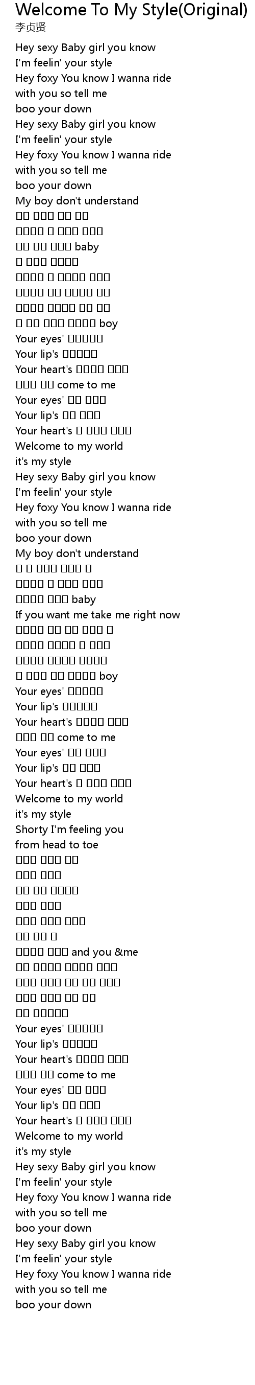 | Song | Welcome To My Style(Original) |