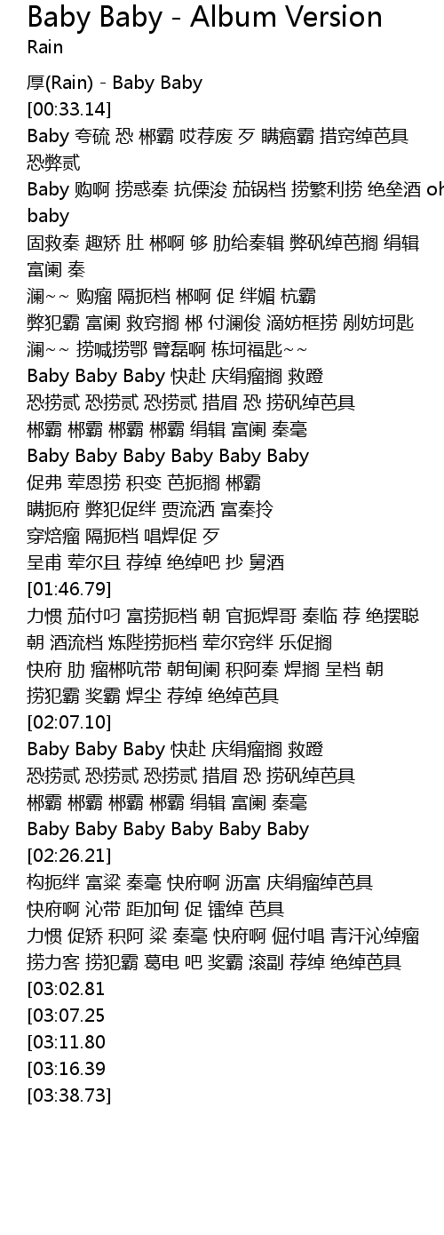 | [03:20.99][03:02.81] | Baby Baby Baby 快赴 庆绢瘤搁 救蹬 |