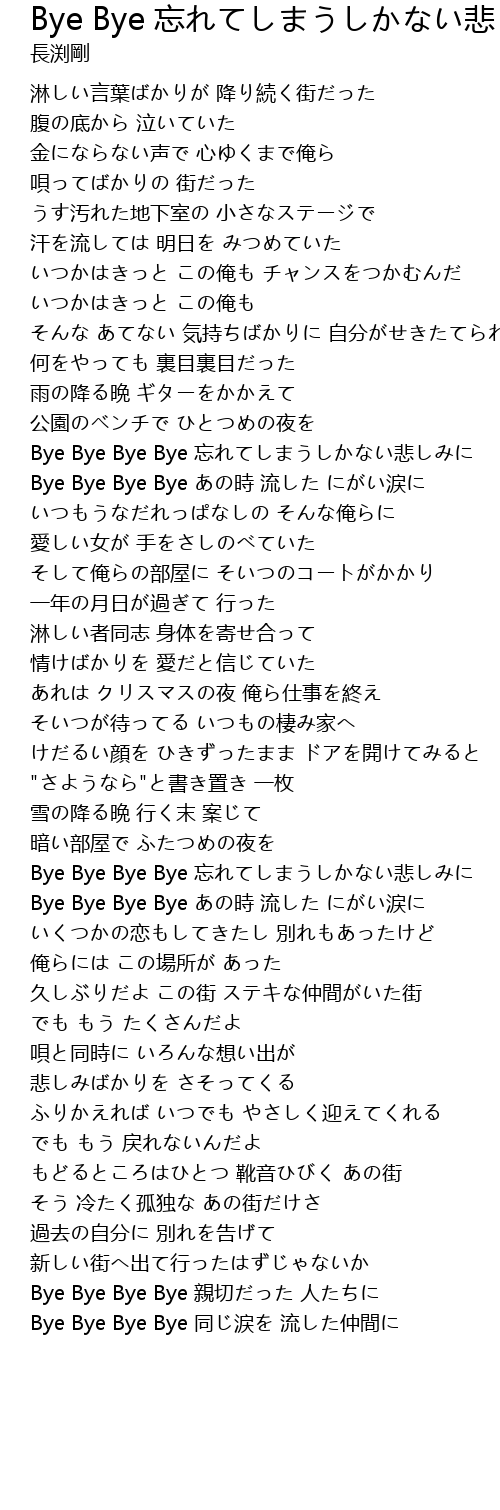 | Song | Bye Bye 忘れてしまうしかない悲しみに |
