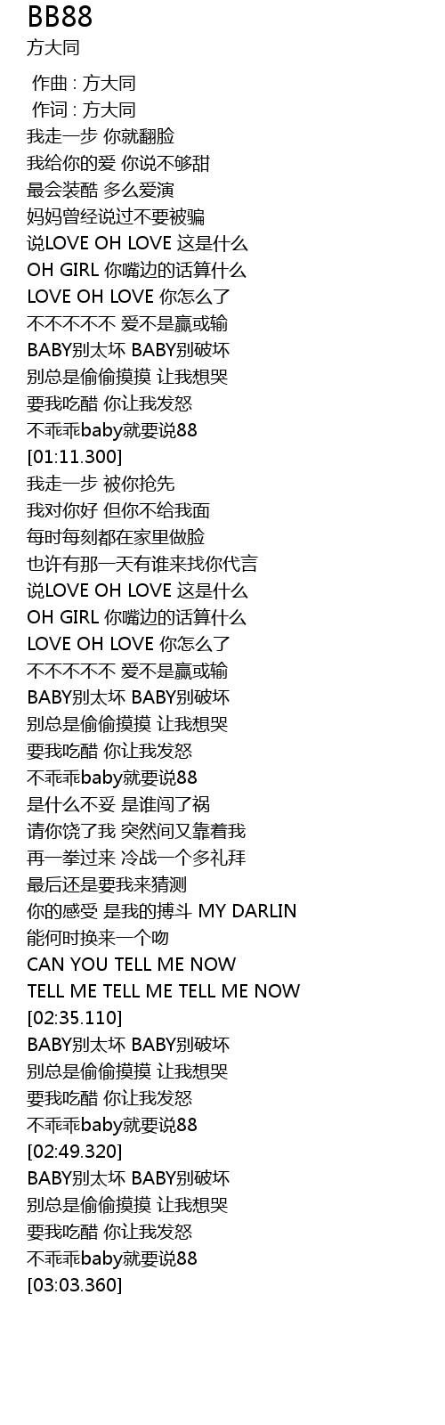 | [03:00.230] | bu guai guai baby jiu yao shuo 88 |