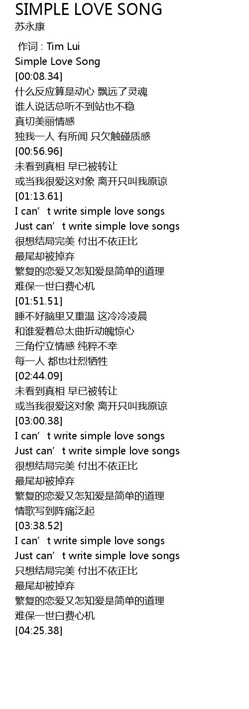 | [00:04.14] | Simple Love Song |
