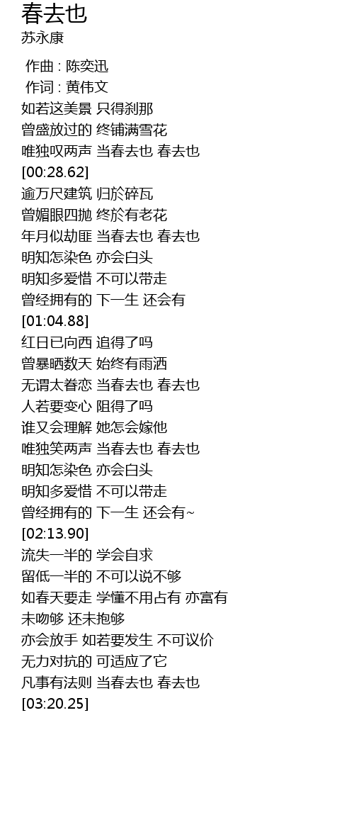 | [01:40.28] | 唯独笑两声 当春去也 春去也 |