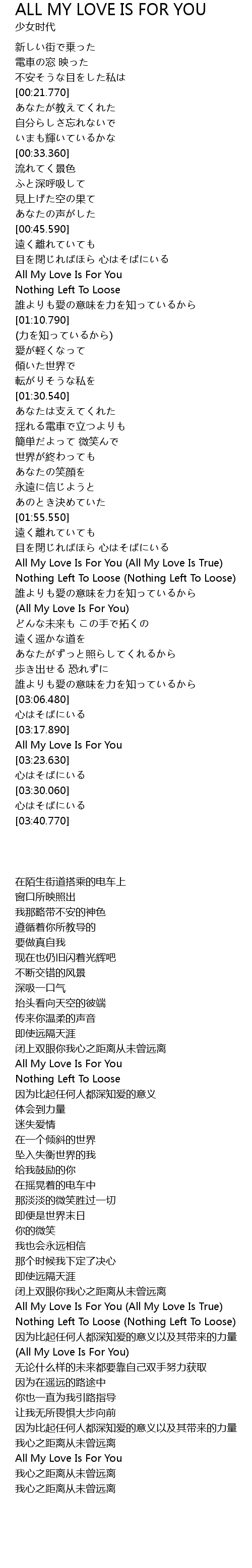 | [02:06.480] | All My Love Is For You (All My Love Is True) |