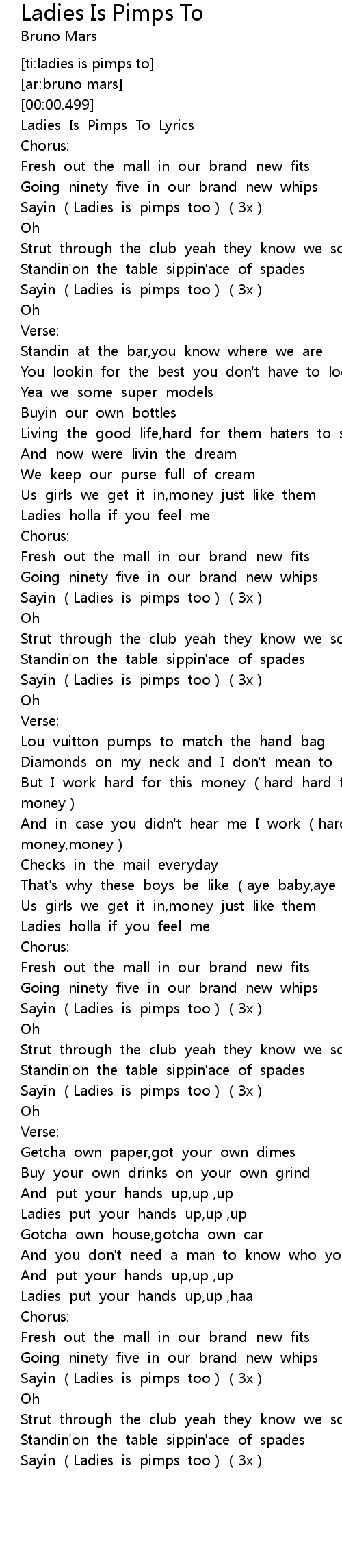 | [00:02.329] | Ladies Is Pimps To Lyrics |