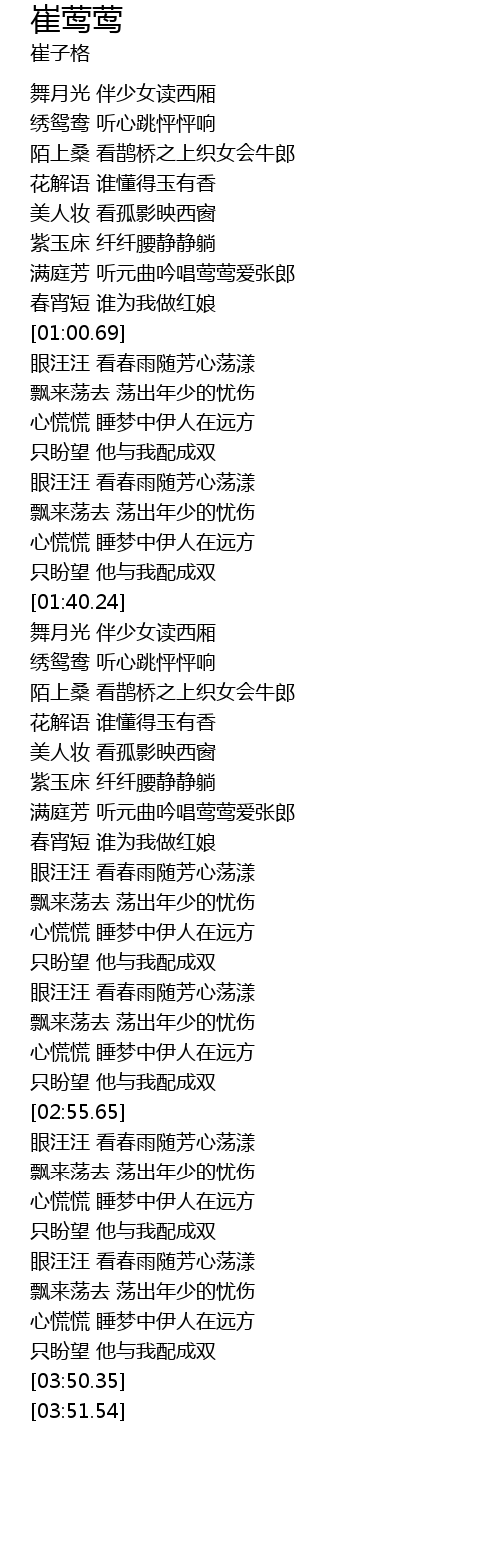 | [00:51.88] | 满庭芳 听元曲吟唱莺莺爱张郎 |