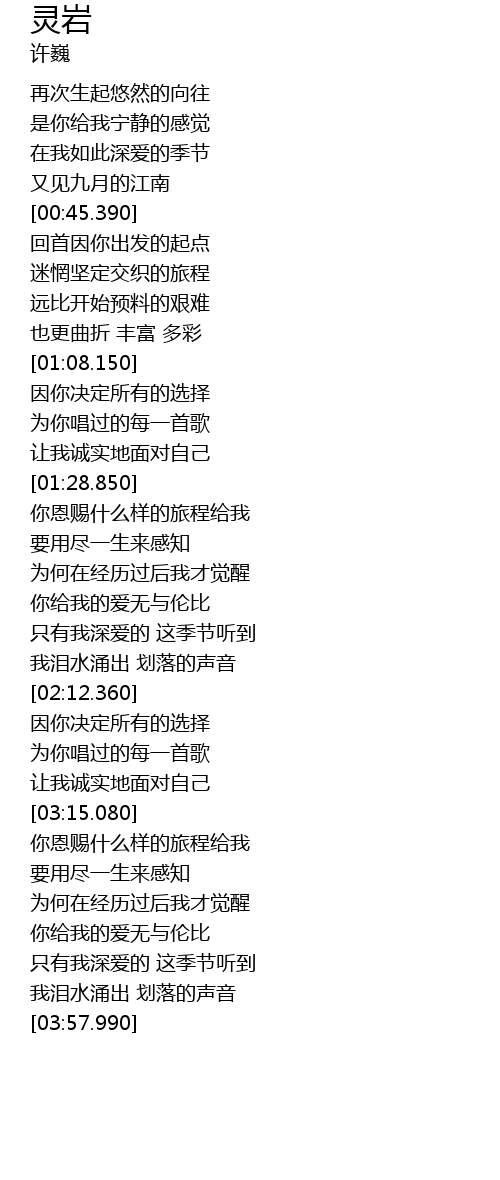 | [03:44.490] | 我泪水涌出 划落的声音 |