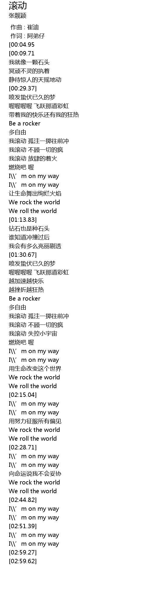 | [00:12.31][00:04.95] | Keep on rolling |