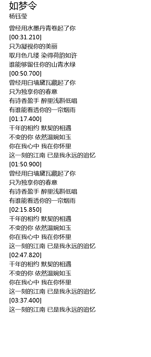 | [03:27.360] | 这一刻的江南 已是我永远的追忆 |