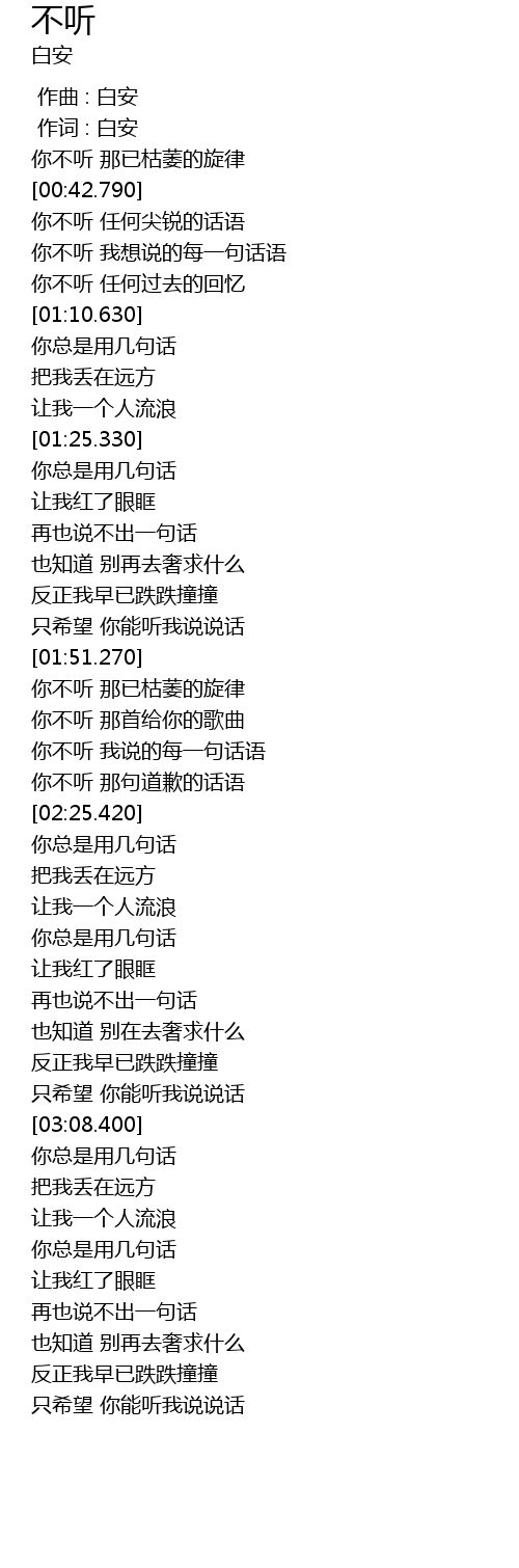 | [00:00.00] | 作曲 : 白安 |