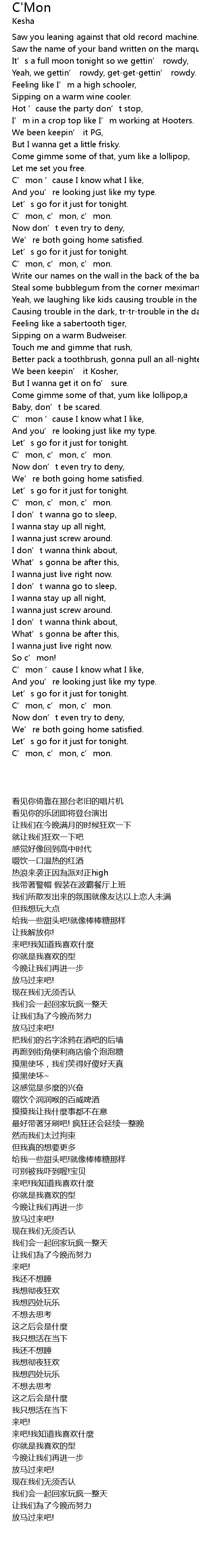 | [00:56.610] | C' mon, c' mon, c' mon. |