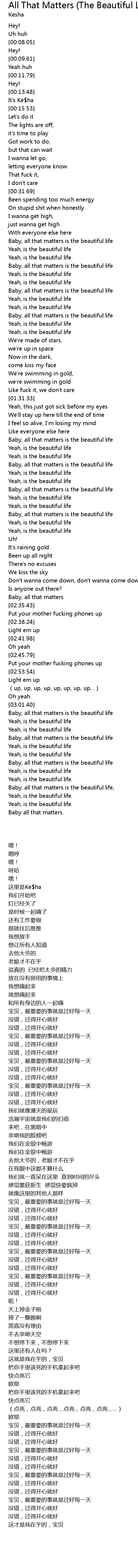 | [01:47.49] | Baby, all that matters is the beautiful life |