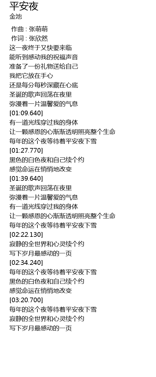 | [03:21.630] | 每年的这个夜等待着平安夜下雪 |