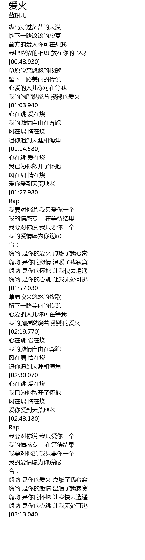 | [02:14.790] | 我的胸膛燃烧着 熊熊的爱火 |