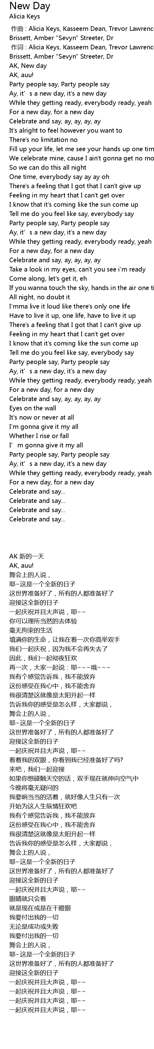 | [00:25.200] | Ay, it' s a new day, it' s a new day |