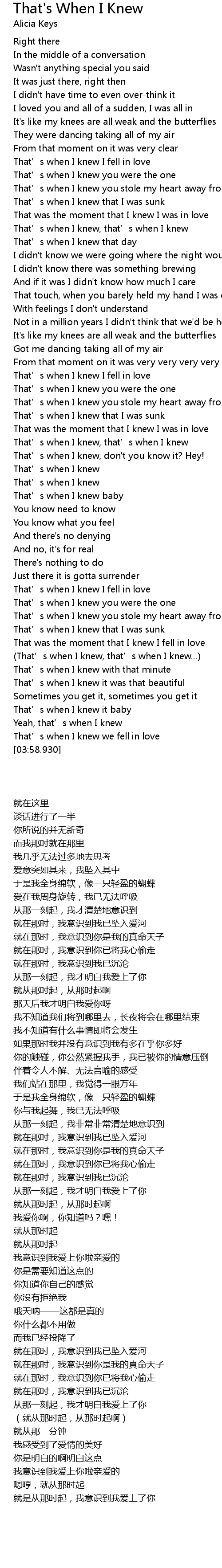 | [03:25.290] | That' s when I knew, that' s when I knew... |
