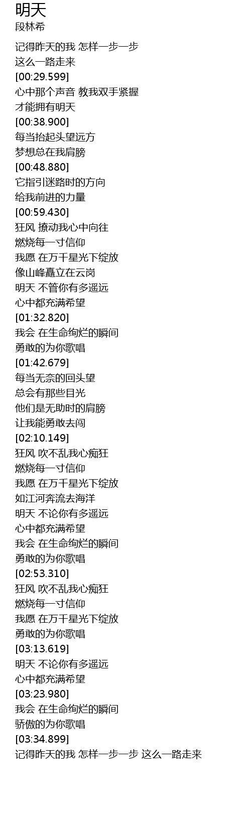 | [02:33.660] | 明天 不论你有多遥远 |
