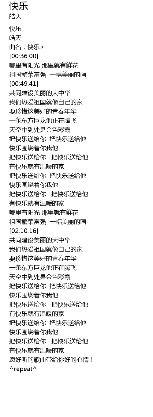 | [02:55.94] | 把快乐送给你 把快乐送给他 |