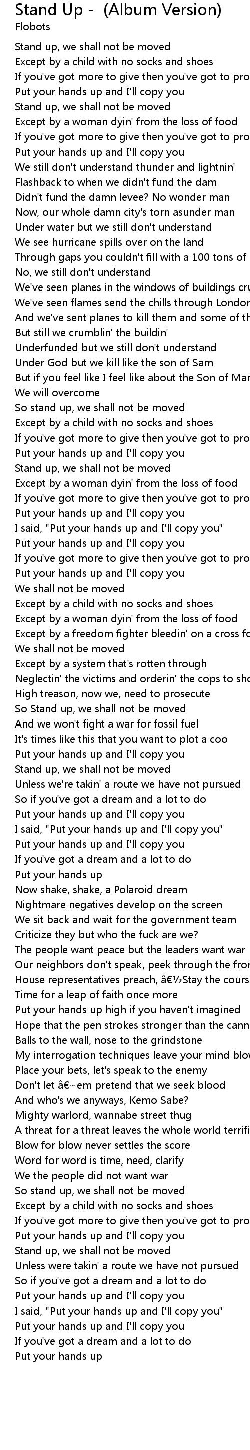 | Stand up, we shall not be moved | |