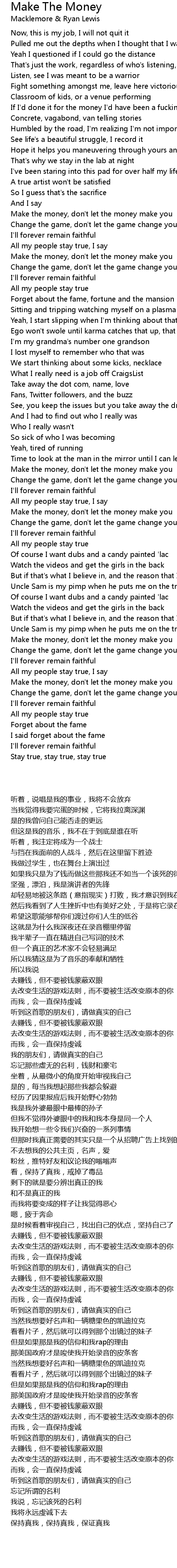 Stay true, stay true, stay true |