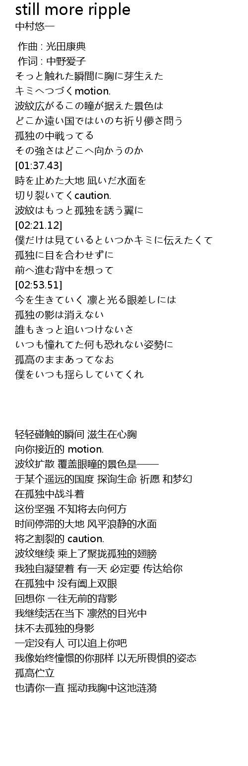 | [02:06.09] | 波紋はもっと孤独を誘う翼に |