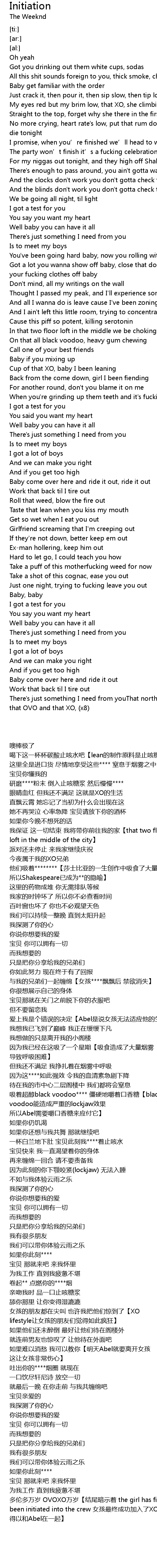 | [01:29.48] | Got a lot you wanna show off baby, close that door before you take your fucking clothes off baby |