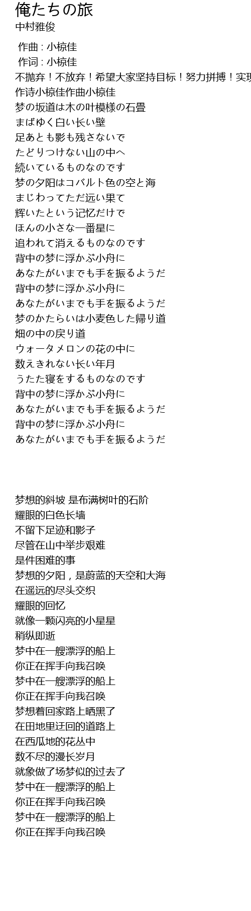 | [00:03.96] | 不抛弃!不放弃!希望大家坚持目标!努力拼搏!实现自己的理想! |