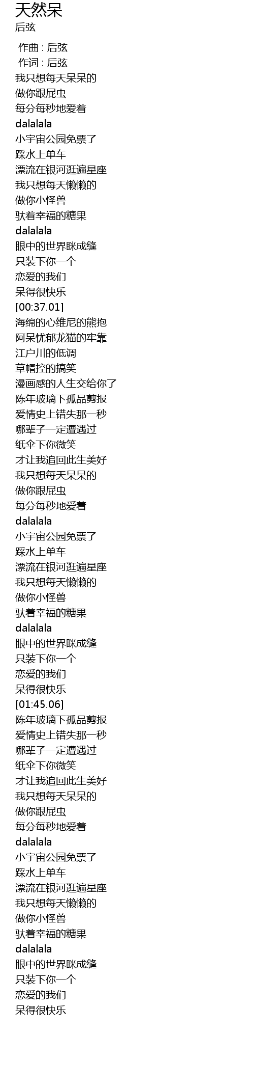| [00:02.04] | wǒ zhǐ xiǎng měi tiān dāi dāi de |