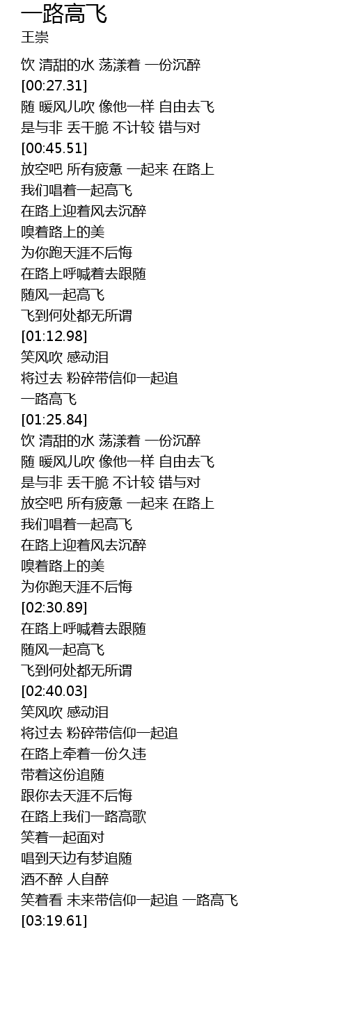 | [03:12.64] | 笑着看 未来带信仰一起追 一路高飞 |