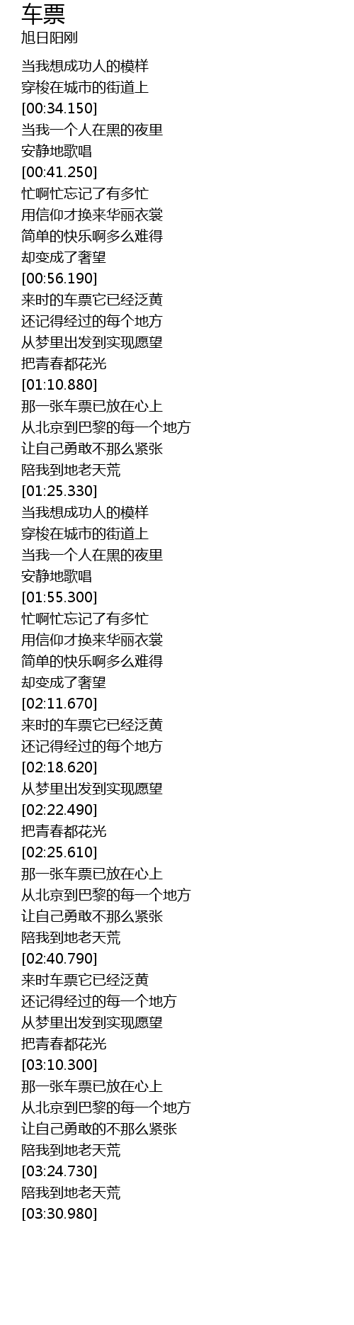 | [00:56.880] | 来时的车票它已经泛黄 |