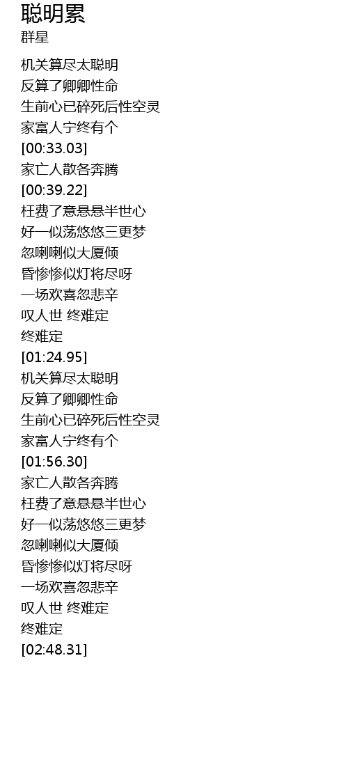 | [00:15.43] | 机关算尽太聪明 |