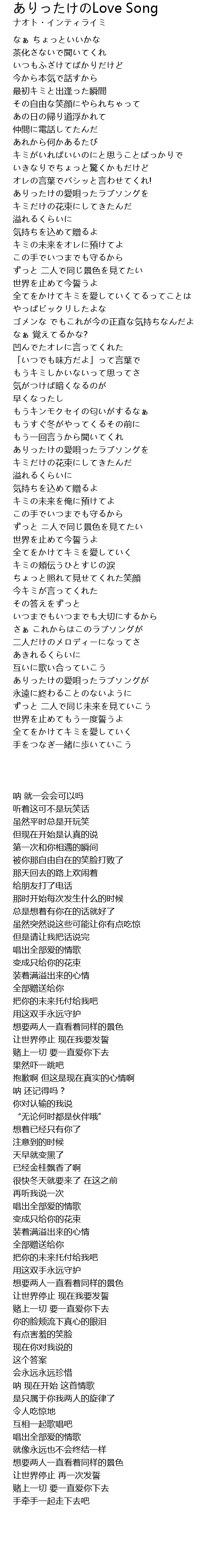 | [02:45.590] | ありったけの愛唄ったラブソングを |