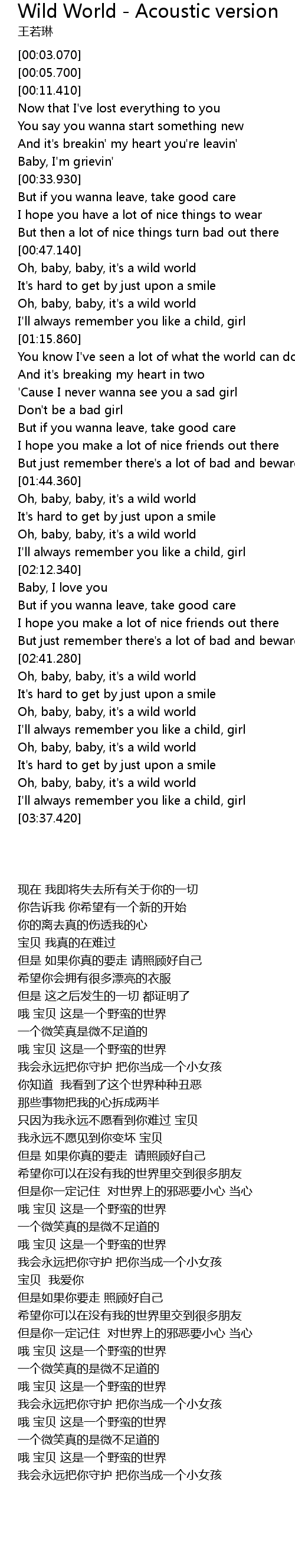 | [03:24.560] | Oh, baby, baby, it's a wild world |
