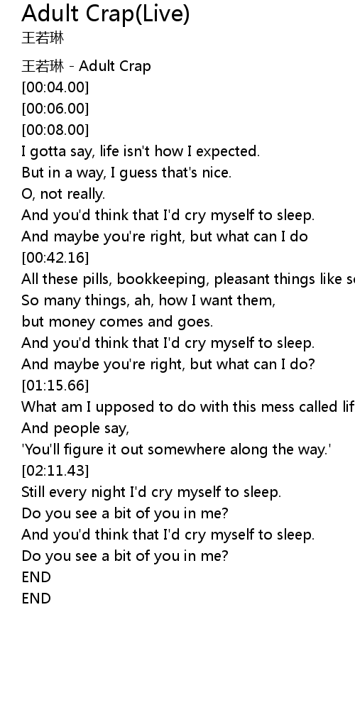 | [00:02.00] | wáng ruò lín Adult Crap |
