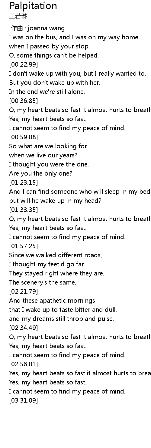 | [00:38.47] | O, my heart beats so fast it almost hurts to breathe. |
