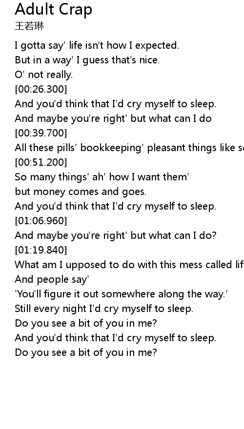 | [00:27.200] | And you'd think that I'd cry myself to sleep. |