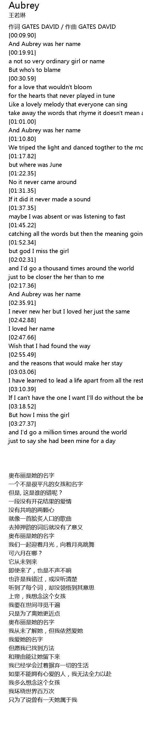 | [00:16.51] | And Aubrey was her name |