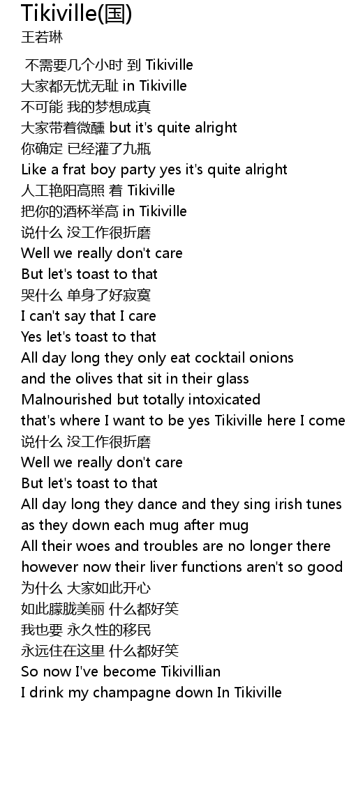 | [01:45.390] | that' s where I want to be yes Tikiville here I come Tikiville here I come |