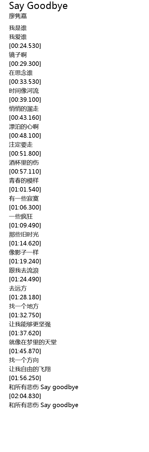 | [01:58.0] | he suo you bei shang Say goodbye |