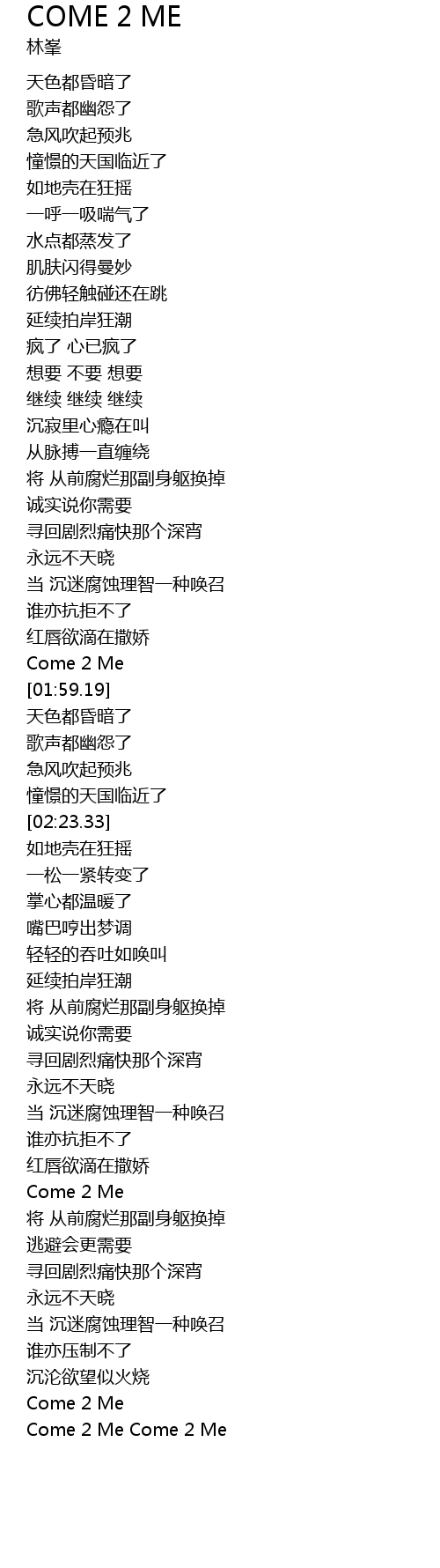| [04:06.26] | Come 2 Me Come 2 Me |
