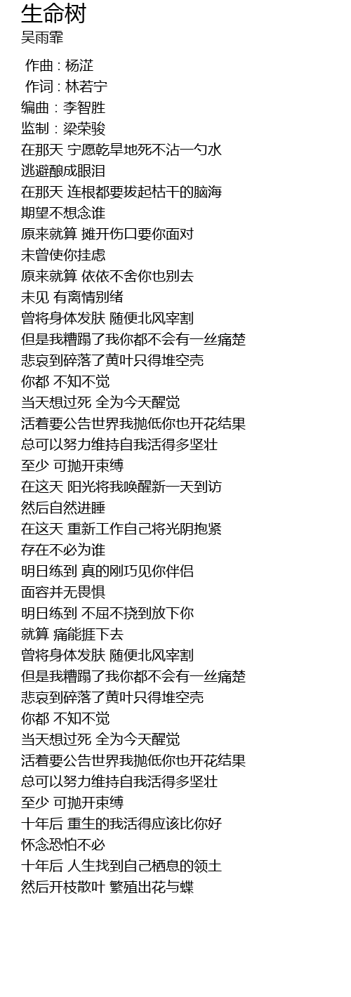 | Song | 生命树 |