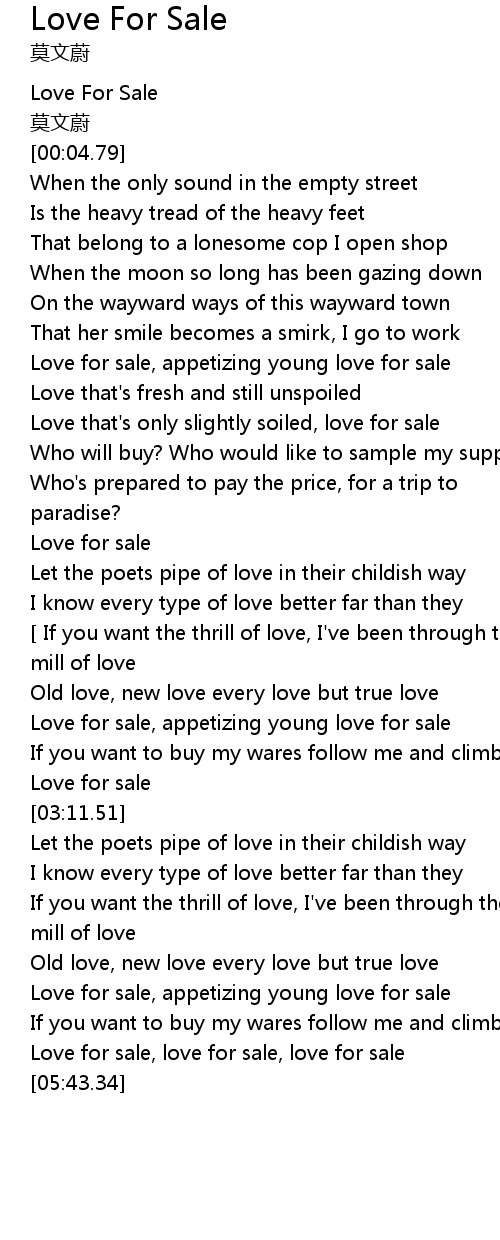 | [05:14.54] | Love for sale, love for sale, love for sale |
