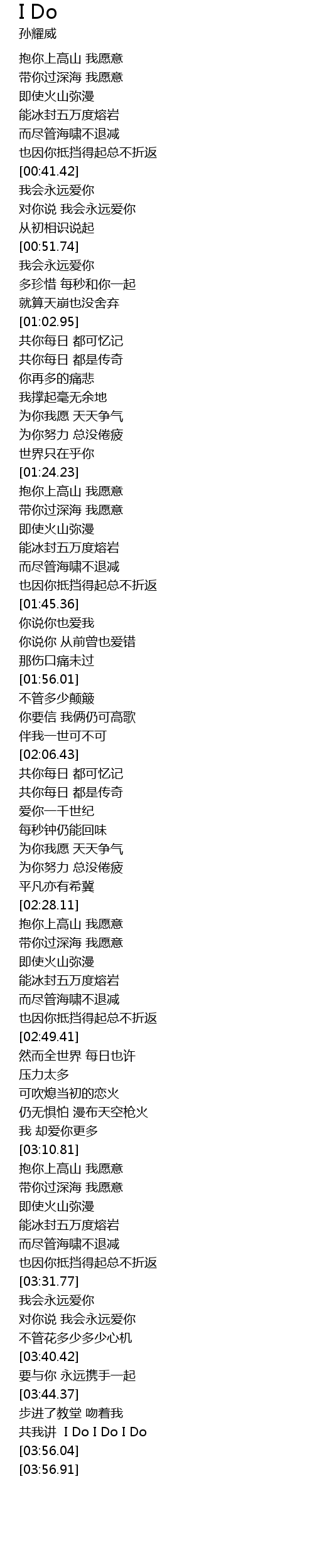 | [03:50.10] | 共我讲 I Do I Do I Do |