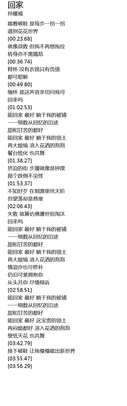 | [02:20.30] | 能回家 最好 躺于我的被铺 |