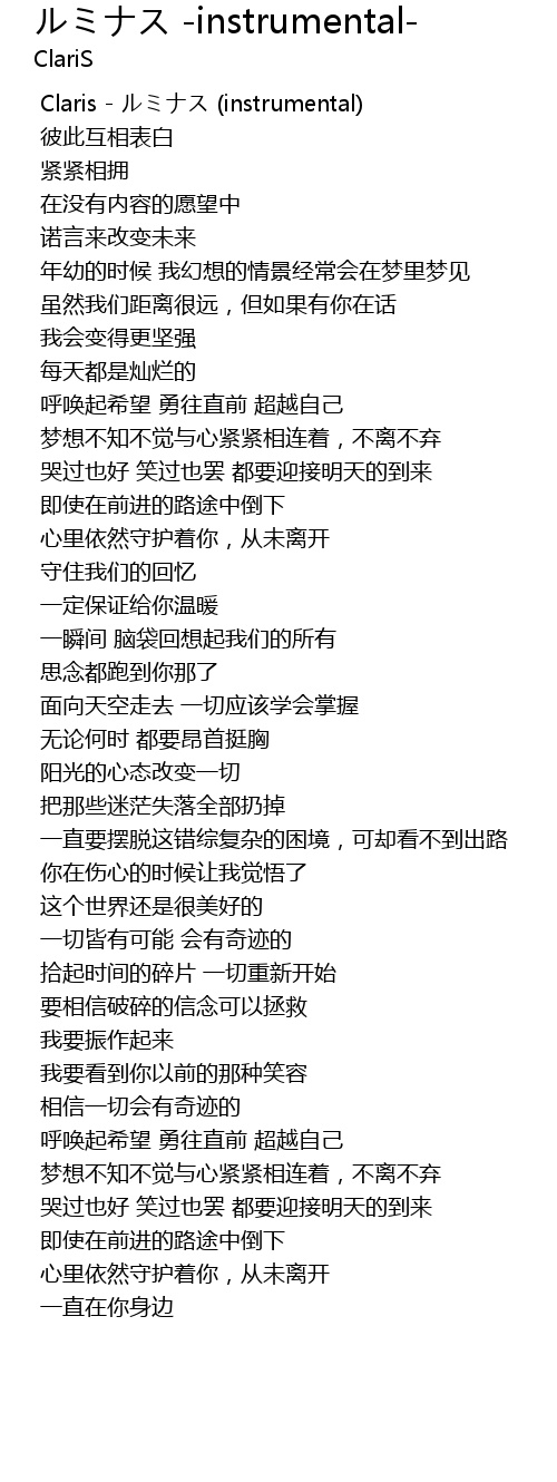 | [00:01.70] | Claris - ルミナス (instrumental) |