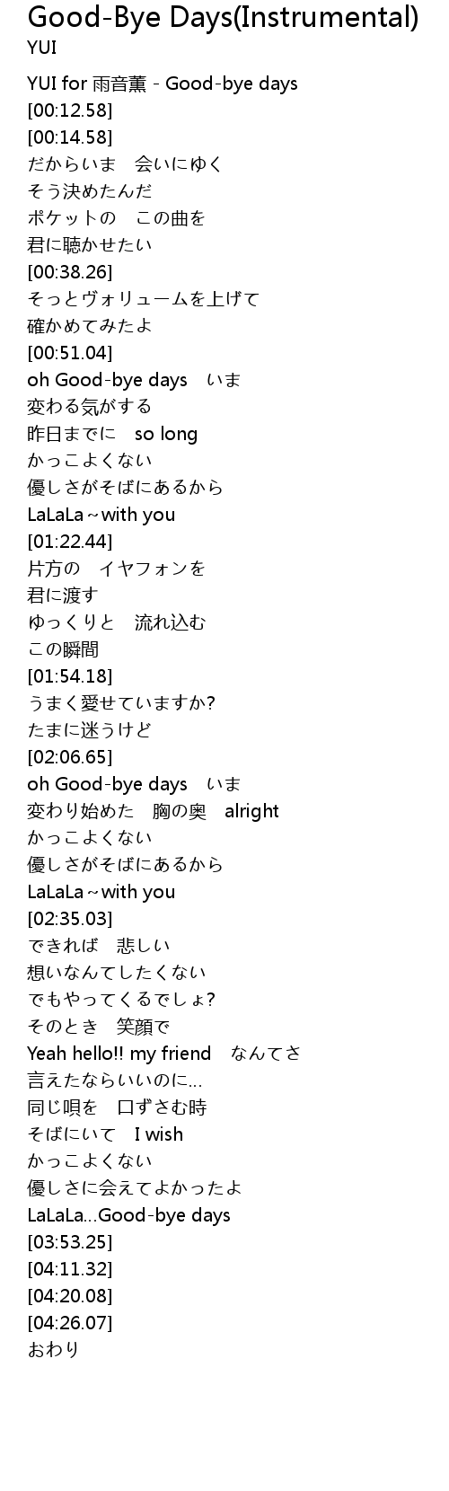 | [00:00.00] | YUI for yu yin xun Goodbye days |