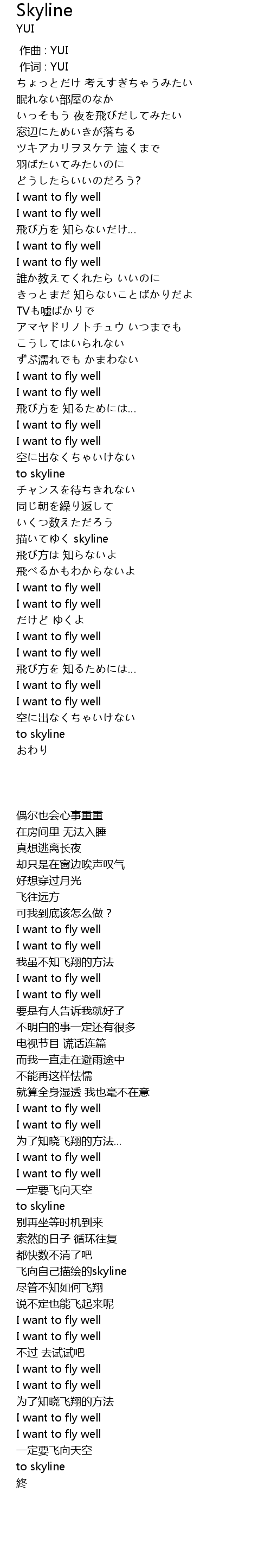作词 : YUI |